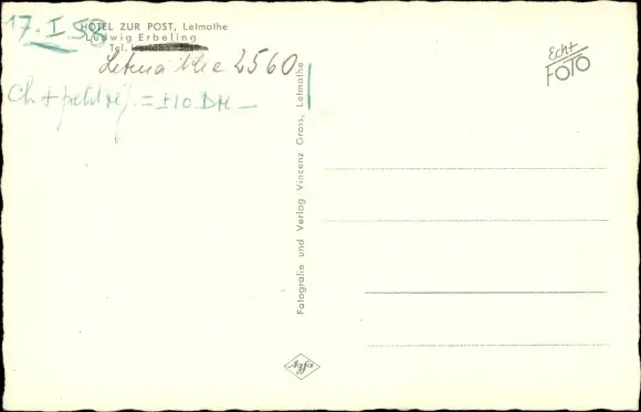 Zustand, siehe Scan, ungelaufen - Inh. Ludwig Erbeling - ca 14 cm X 9 cm