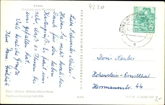 Ak Leuna an der Saale, Eingang zum Waldbad