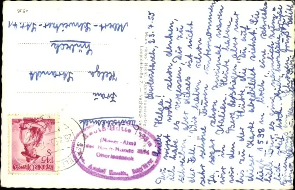 Zustand, siehe Scan, gelaufen, 1955 - ca 14 cm X 9 cm