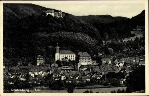 Ak Leutenberg in Thüringen, Totalansicht der Ortschaft, Kirche, Schloss, Wald
