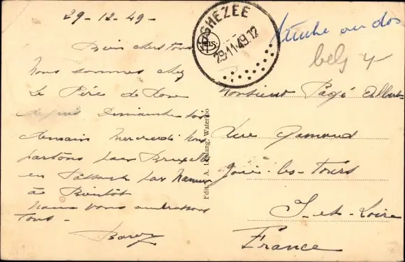 Zustand, siehe Scan, gelaufen, 1949 - ca 14 cm X 9 cm