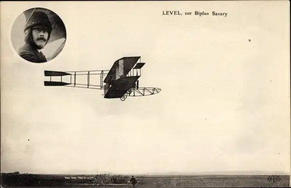 Ak Level, auf Biplan Savary, Flugzeug in der Luft