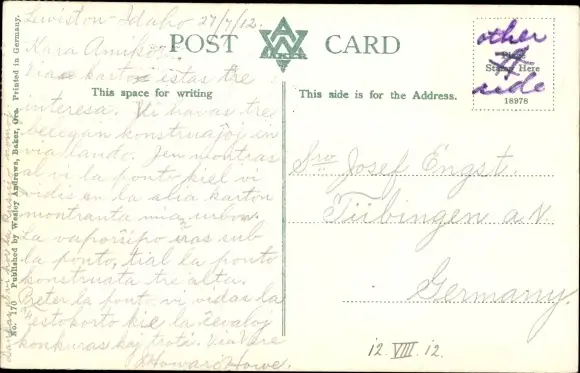 Zustand, siehe Scan, gelaufen, 1912 - ca 14 cm X 9 cm
