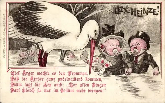 Ak Lex Heinze, Storch, Kinder