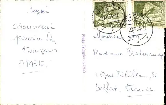 Zustand, siehe Scan, gelaufen, 1954 - ca 5 cm X 3 cm