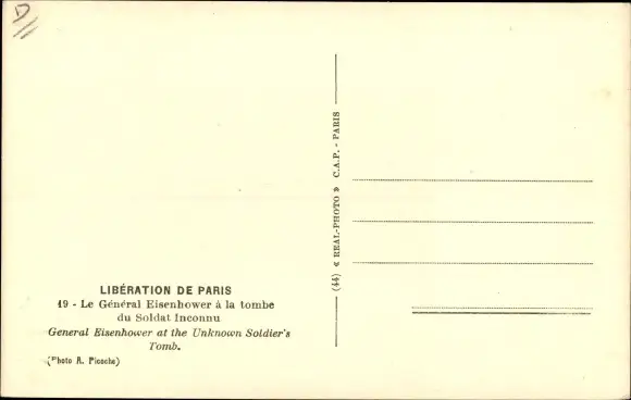 Ak Liberation de Paris, Le General Eisenhower a la tombe du Soldat Inconnu, Arc de Triomphe
