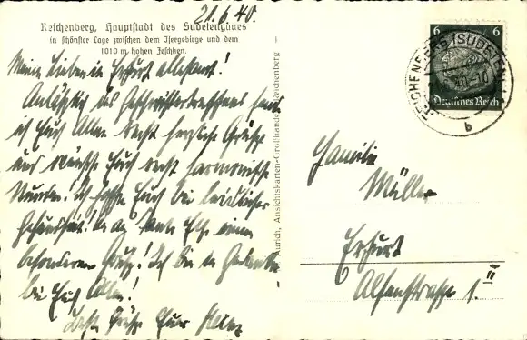 Ansichtskarte, Postkarte, Liberec, Reichenberg