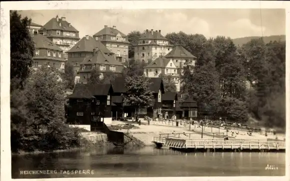 Ak Liberec Reichenberg Stadt, Talsperre, Wasserpartie