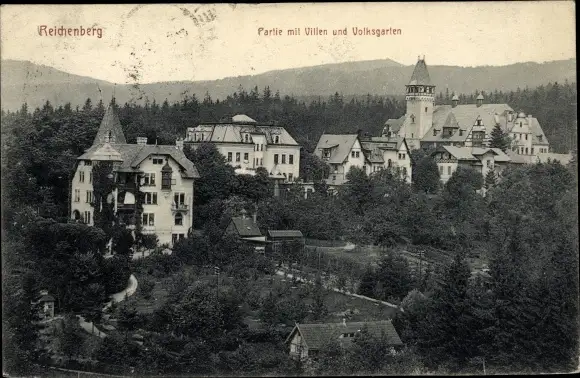 Ak Liberec Reichenberg Stadt, Villen und Volksgarten