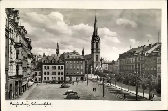 Ak Liberec Reichenberg in Böhmen, Bismarckplatz mit Erzdekanalkirche
