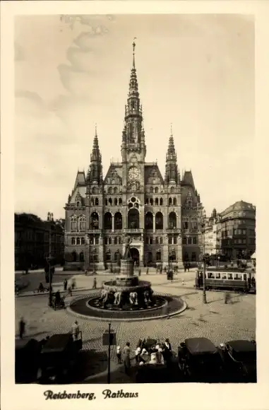 Ak Liberec Reichenberg in Böhmen, Rathaus, Straßenbahn
