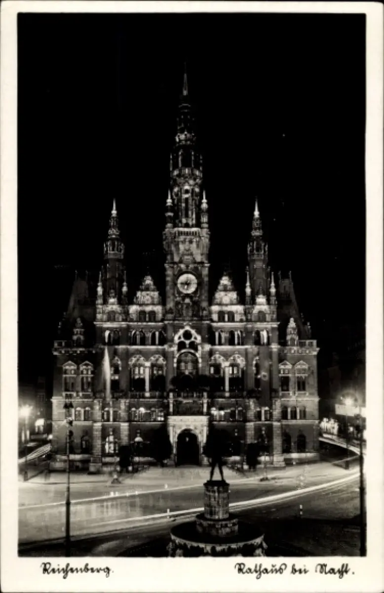 Ak Liberec Reichenberg in Böhmen, Rathaus bei Nacht