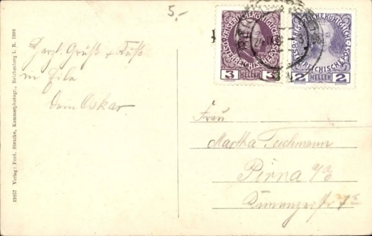Zustand siehe Scan, gelaufen, 1908 - ca 14 cm X 9 cm