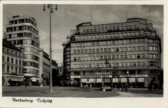 Ak Liberec Reichenberg in Böhmen, Tuchplatz, Geschäfte