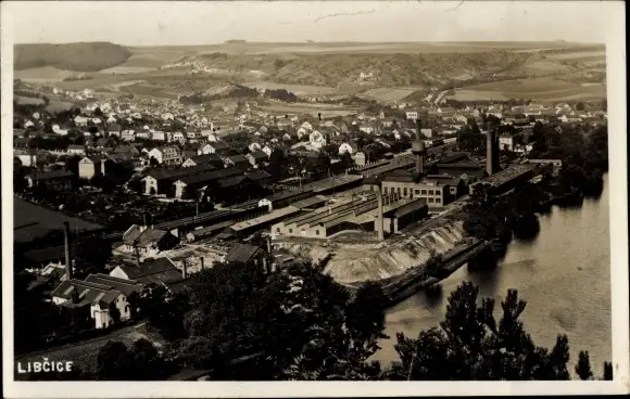 Ak Libčice nad Vltavou Mittelböhmen Tschechien, Teilansicht, Vogelschau