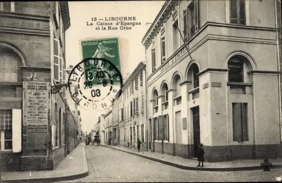 Ak Libourne Gironde, Caisse d'Epargne, Rue Orbe