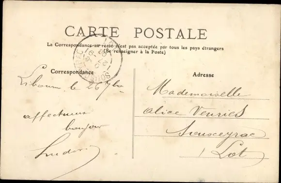 gelaufen 1908, Eckknick rechts unten, Abriebspuren, sonst guter Zustand