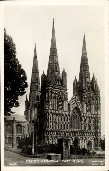 Ak Lichfield West Midlands, Lichfield Cathedral, West Front, Außenansicht