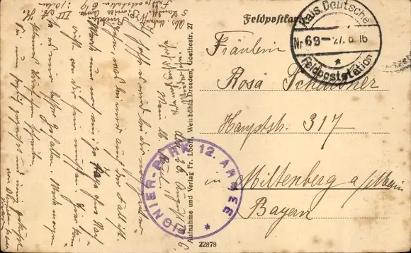 Zustand, siehe Scan, gelaufen, 1916 - ca 14 cm X 8 cm