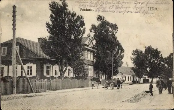 Ak Lida Weißrussland, Postamt, Straßenpartie, Anwohner