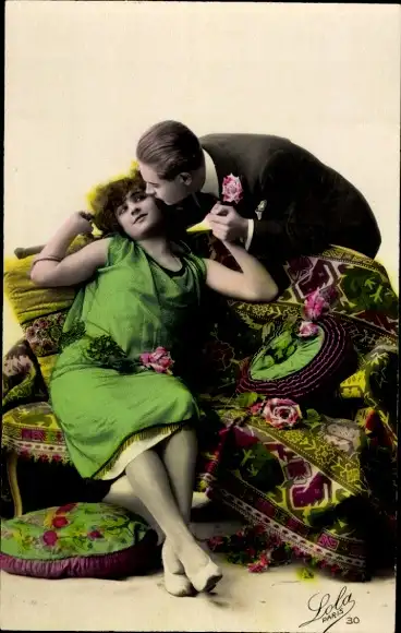 Ak Liebe, Amor, Liebespaar, Kuss, Glück