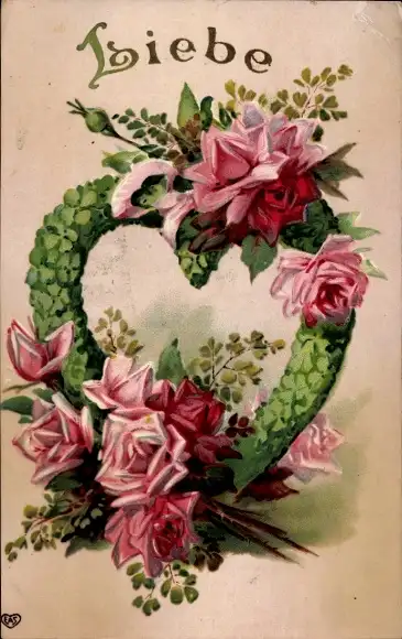 Ak Liebe, Kranz aus Glücksklee, Rosen