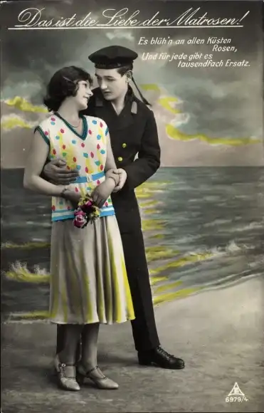 Ak Liebe der Matrosen, Liebespaar, Marinesoldat in Uniform