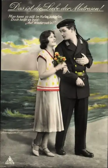 Ak Liebe der Matrosen, Liebespaar, Marinesoldat in Uniform