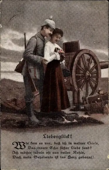Ak Liebesglück, Soldatenliebe, Geschütz, Soldat mit Frau
