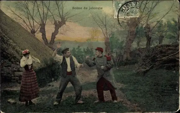 Ak Liebespaar, Eifersüchtiger Mann, Prügelei, Soldat in Uniform