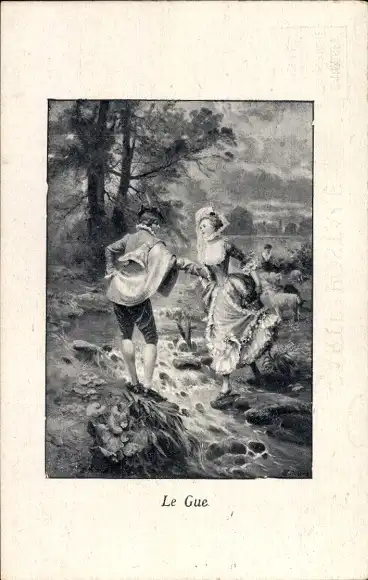Ak Liebespaar, Flussüberquerung, Liebe, Schafe