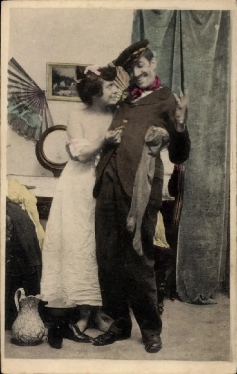 Ak Liebespaar, Frau in weißem Unterkleid, Fächer