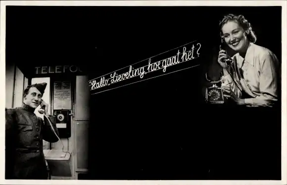 Ak Liebespaar, Frau und Soldat beim Telefonieren