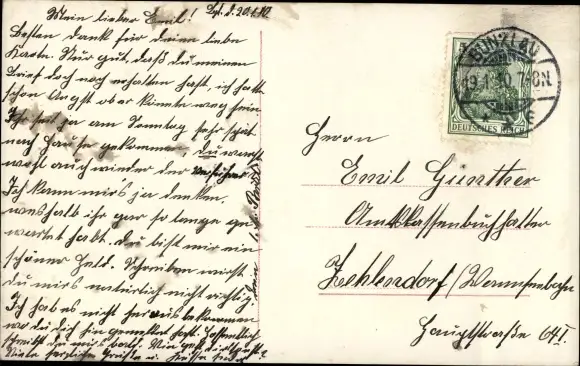 gelaufen 1910, leicht fleckig, sonst guter Zustand