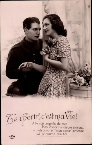 Ak Liebespaar, Liebe, Blumen, Rosen