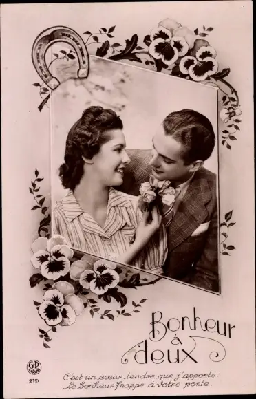 Ak Liebespaar, Liebe, Stiefmütterchen, Hufeisen