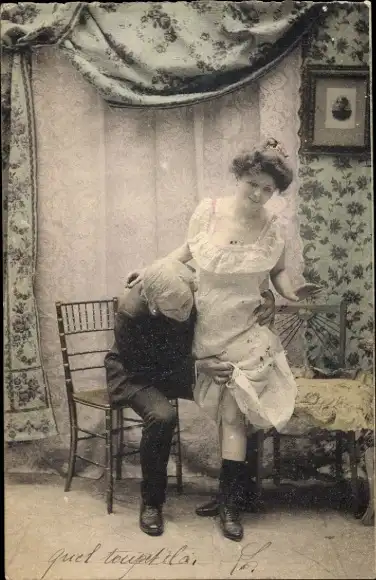 Ak Liebespaar, Neugieruger Mann, Schuhe, Strümpfe