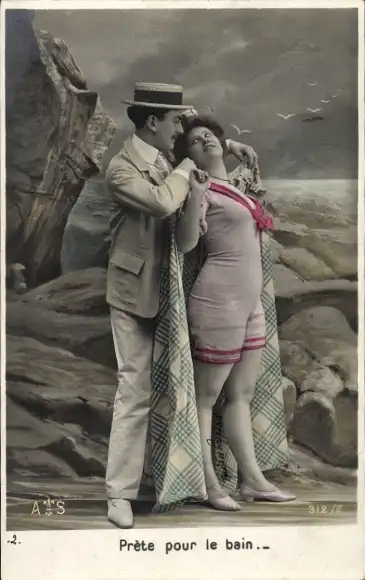 Ak Liebespaar am Strand, Frau im Badeanzug