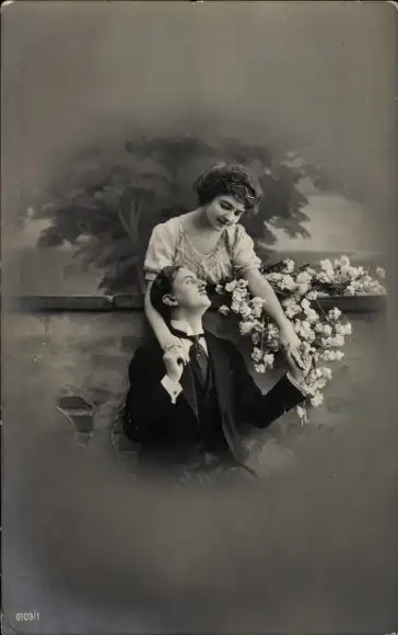 Ak Liebespaar an einer Mauer