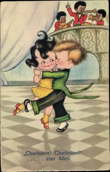Ak Liebespaar beim Tanzen, Musikband