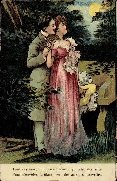 Ak Liebespaar im Mondschein