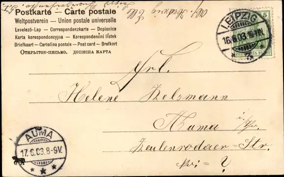 Zustand siehe Scan, gelaufen, 1903 - ca 9 cm X 14 cm