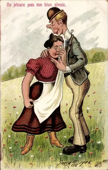 Ak Liebespaar, weinende Frau