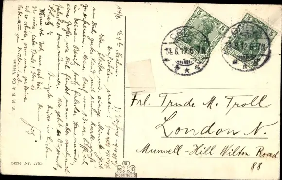 Zustand, siehe Scan, gelaufen, 1912 - ca 14 cm X 9 cm