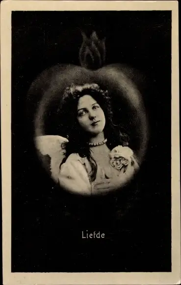 Ak Liefde, Allegorie Frauenportrait in einem Herz