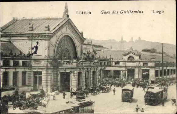 Ak Liège Lüttich Wallonien, Gare des Guillemins, Straßenbahnen