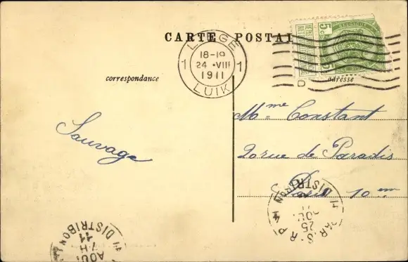 Zustand, siehe Scan, gelaufen, 1911 - ca 14 cm X 9 cm