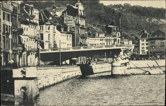 Ak Liège Lüttich Wallonien, im Krieg zerstörte Brücke, Häuser