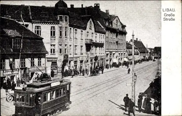 Ak Liepaja Libau Lettland, Große Straße, Straßenbahn