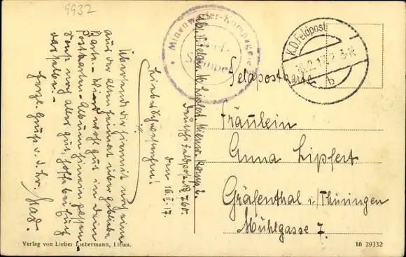 Zustand, siehe Scan, gelaufen, 1917 - ca 5 cm X 3 cm